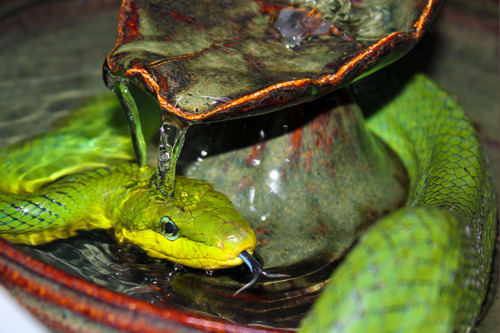 Future versions will have all copper with no enamel and others will have the flower and the leaves enameled to harmonize with the particular fountain bowl they will go with. This design is not likely to become a cat fountain, although people have requested the water falling from copper leaf to leaf design. We’ll see.