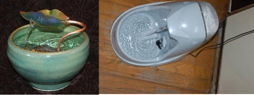 One last point – might not be of interest to your cat but will certainly be to you – ceramic cat water fountains are infinitely better looking and make no unpleasant noise, which most if not all plastic cat water fountains do. In addition, there is no cord draping over the side of the fountain bowl, as is the case with some of the manufactured, even manufactured ceramic cat water fountains.